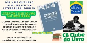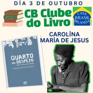 - Clube do Livro CBI lê “Quarto de Despejo”O Clube do Livro Casa Brasil Irlanda inicia com a leitura do livro Quarto de Despejo, de Carolina Maria de Jesus, lançado há 65 anos, um clássico da nossa literatura que continua atual e relevante. A narrativa de Carolina atravessou… Leia mais: Clube do Livro CBI lê “Quarto de Despejo”